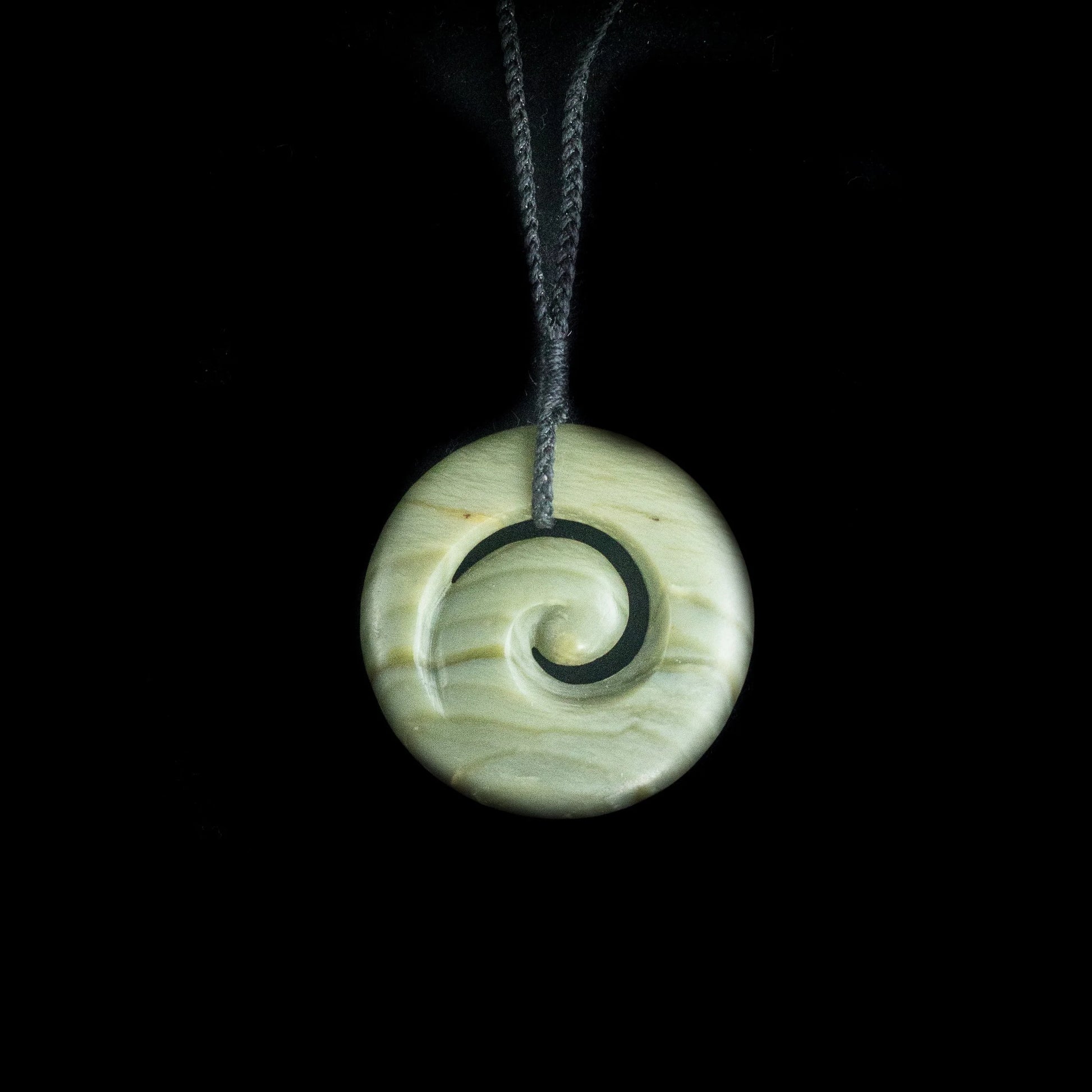 Carved from Kahotea Inanga Pounamu, this piece carries soft, pale green tones with gentle natural patterning, giving it a calm and grounded presence. The smooth spiral form highlights the stone’s natural beauty while honouring traditional Māori symbolism.